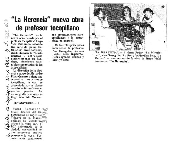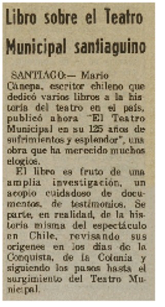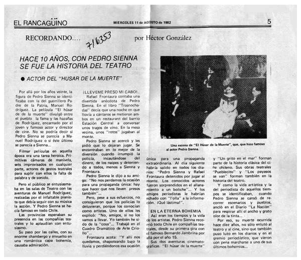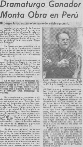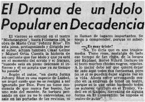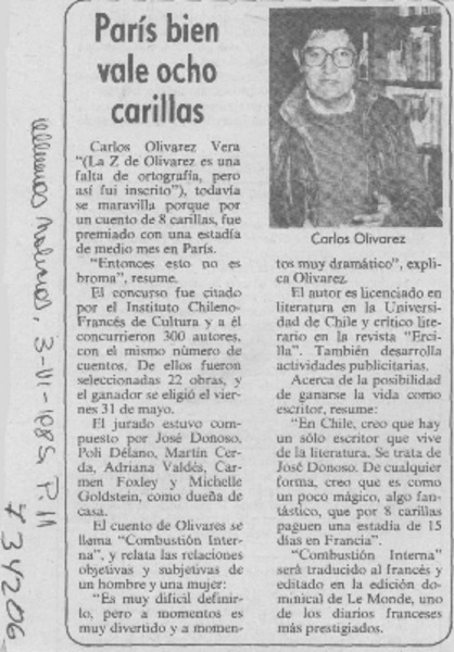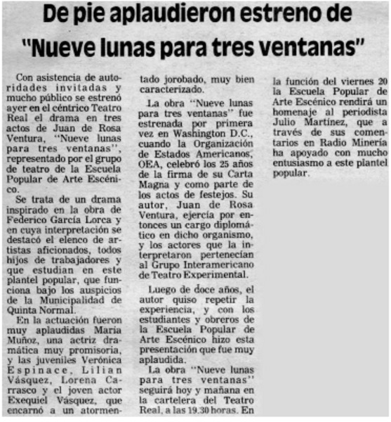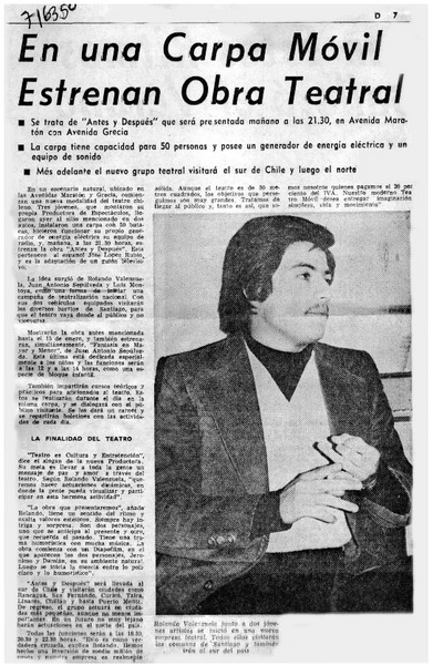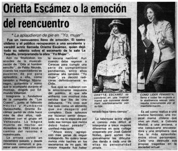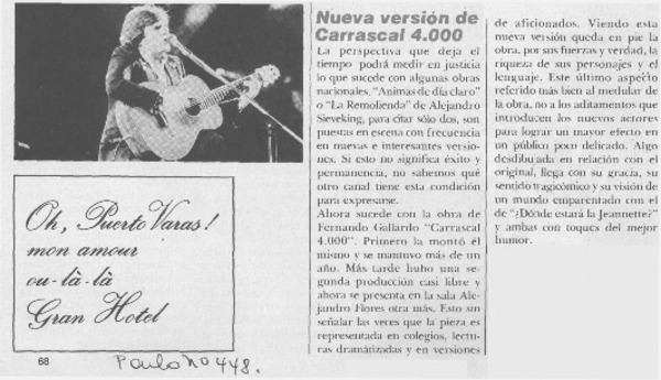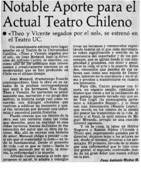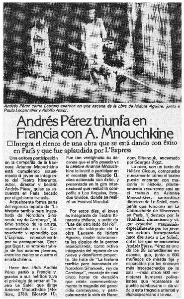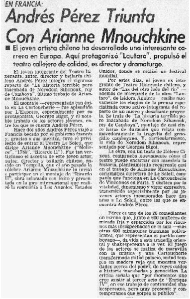 Actor chileno triunfa en París. [artículo]