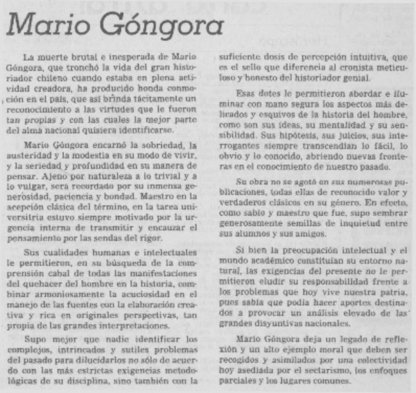 Autores chilenos - Góngora, Mario