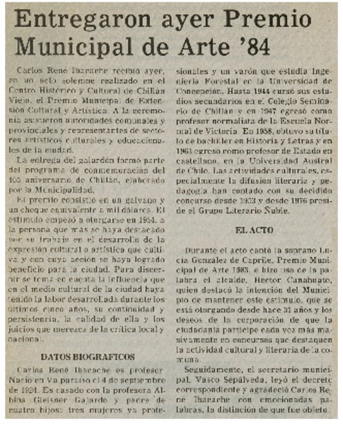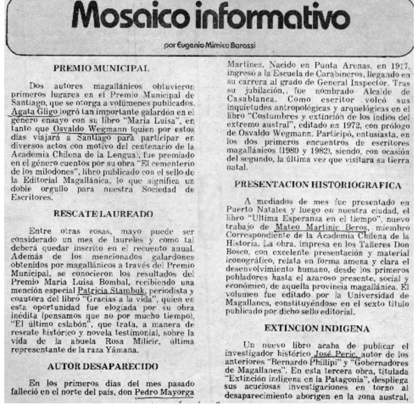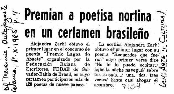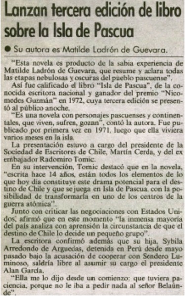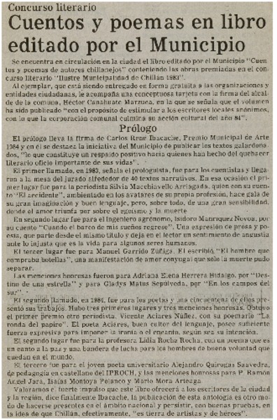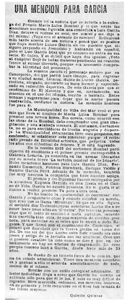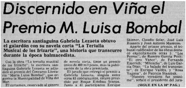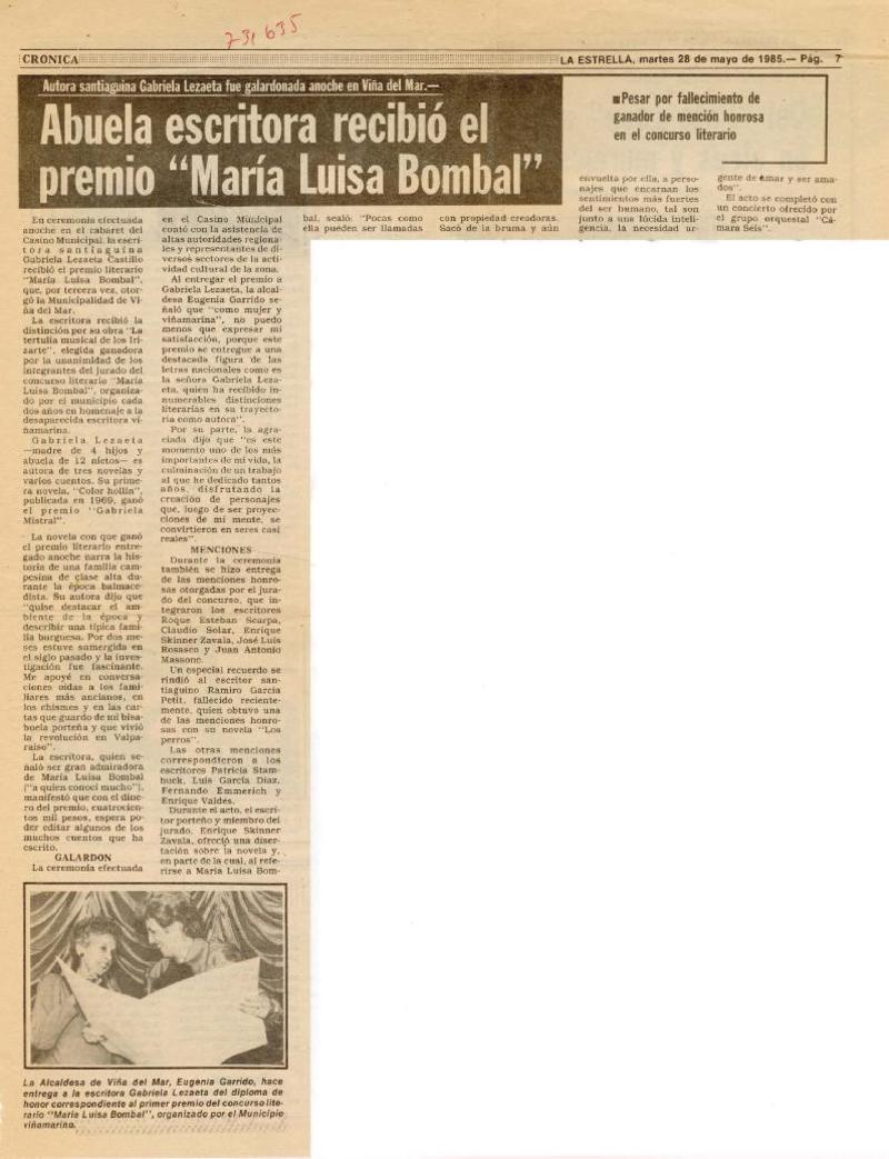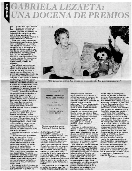 Abuela escritora recibió el premio María Luisa Bombal [artículo].