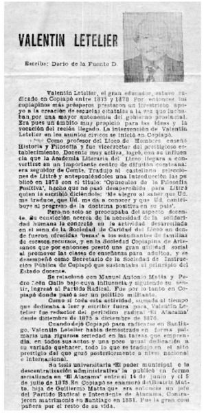 Valentín Letelier [artículo] Darío de la Fuente.