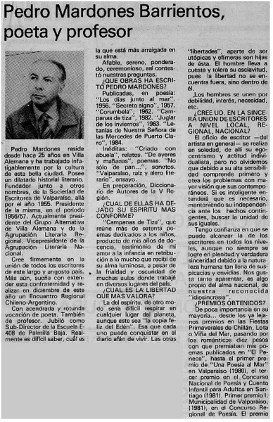 Autoras chilenas - Periodista llamado Miguel González Navarro - González V., Gilda