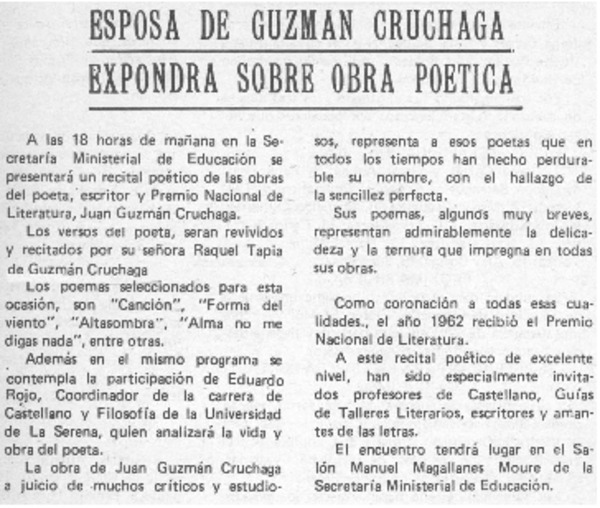 Autoras chilenas - Vivar, Adeláida - Visión poética de Pablo Ruiz