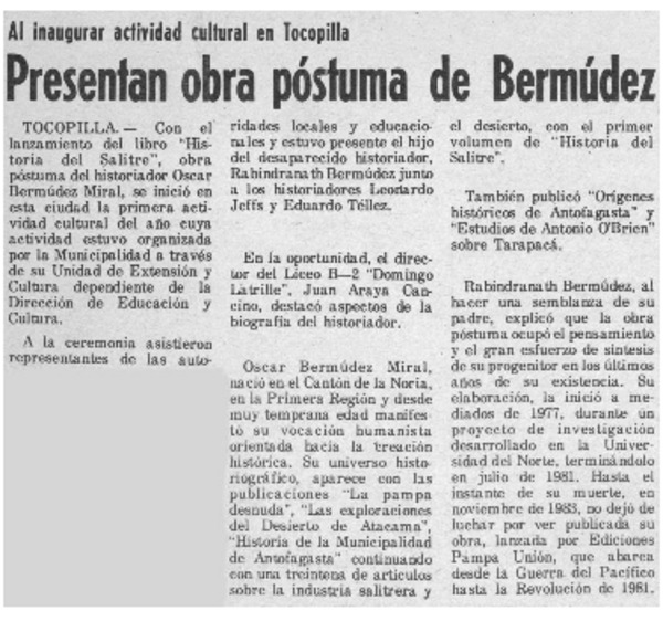 Acto de entrega del primer tomo de La historia de Quilpué. [artículo]