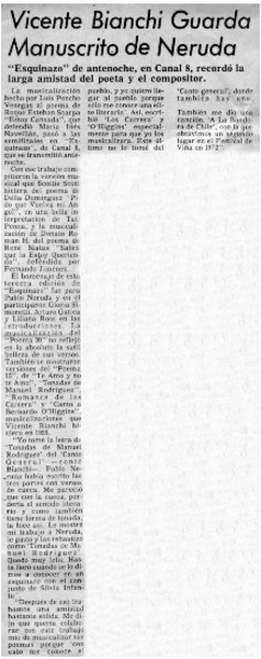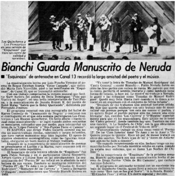 Vicente Bianchi guarda manuscrito de Neruda [artículo]
