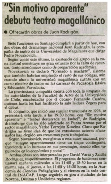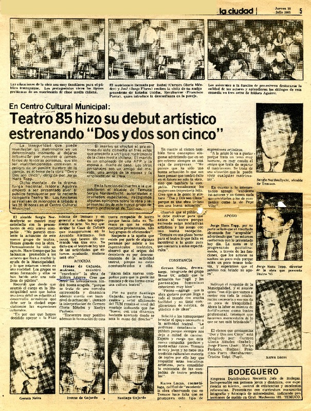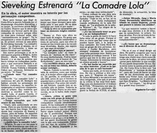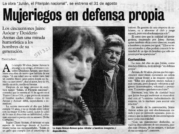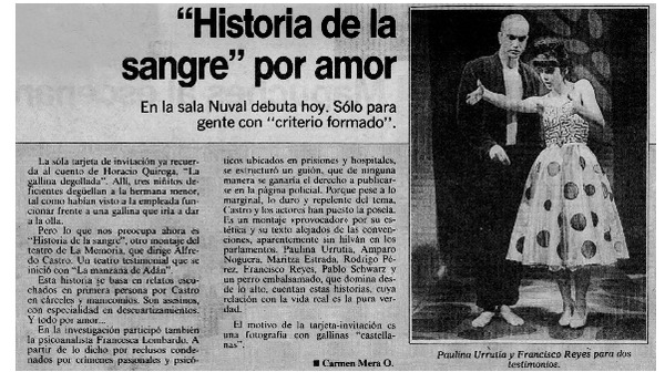 Autores chilenos - Entrevistas - ENTREVISTAS - Miranda, Jaime - Jung, Julio - Regreso sin causa - Adaptaciones teatrales - Duvauchelle, María Elena