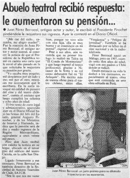 Abuelo teatral recibió respuesta: le aumentaron su pensión... [artículo]