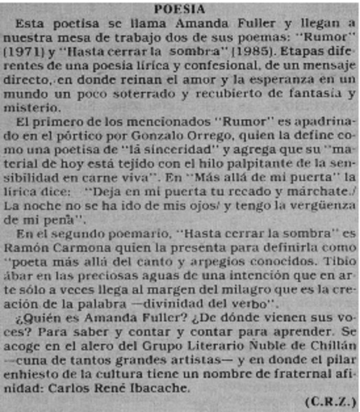 Autoras chilenas - Fuller, Amanda - Hasta cerrar la sombra