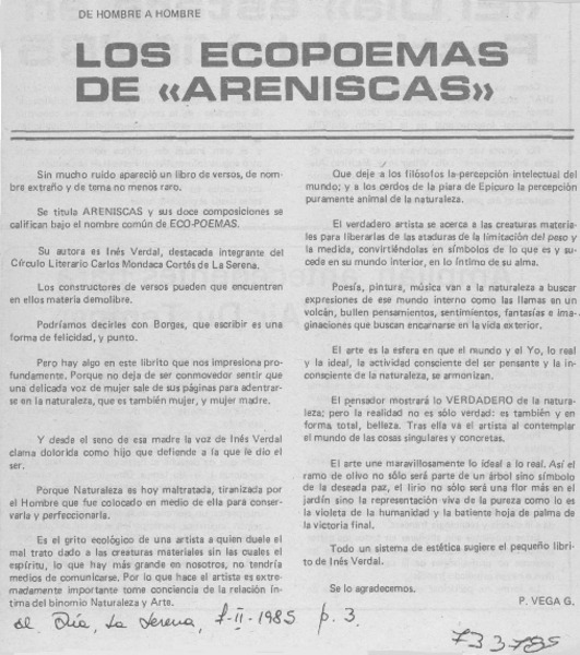 Verso breve y sentir profundo. [artículo]