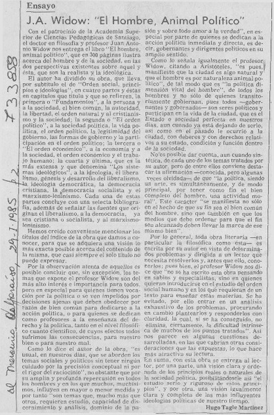 Widow, José M. Ibáñez y la Democracia [artículo] Gonzalo Ibáñez S.M.