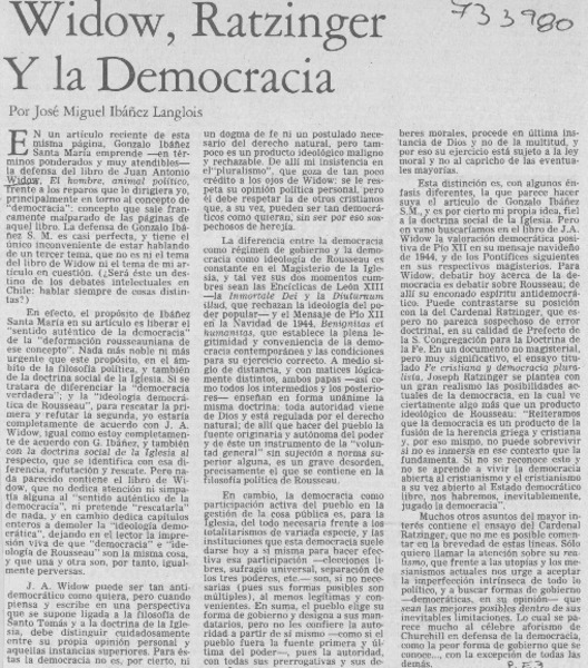 Widow, Ratzinger y la democracia [artículo] José Miguel Ibáñez Langlois.