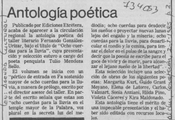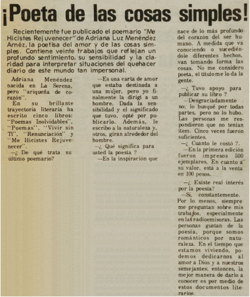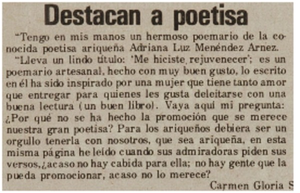 Versos de Adriana Luz Menéndez [artículo] Darío de la Fuente.