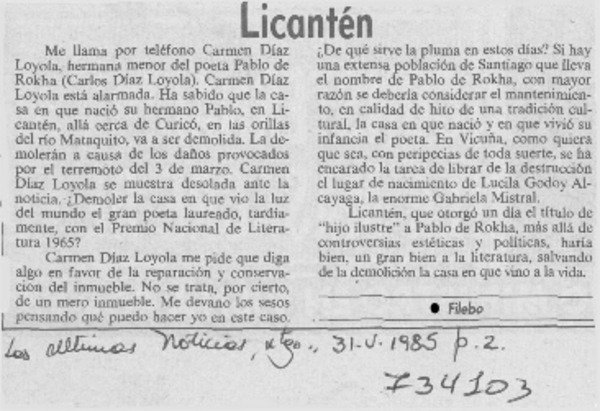 Adiós a Laurita Arrué [artículo] Marino Muñoz Lagos.
