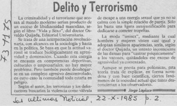 Vida y muerte en La Victoria. [artículo]