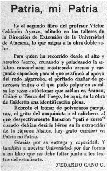 Patria, mi patria - Calderón Ayarza,Víctor - Autores chilenos