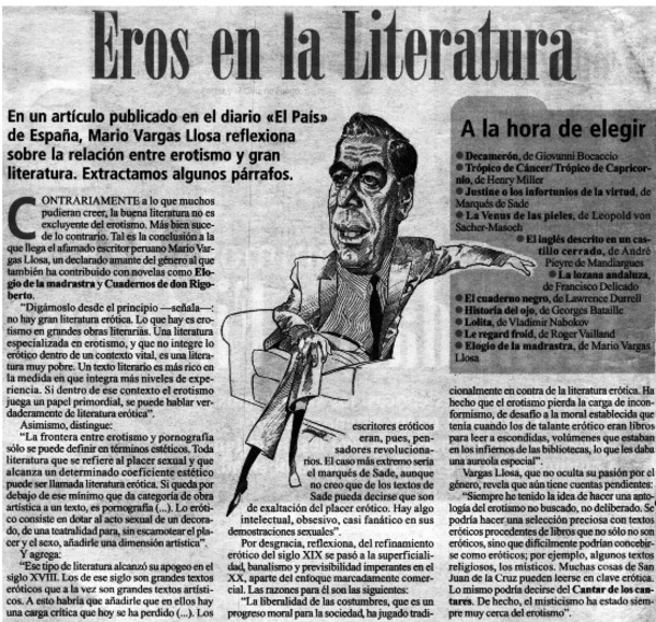 Vargas Llosa: la libertad es básica para el escritor. [artículo]