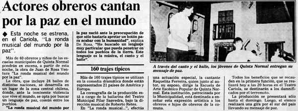 Actores obreros cantan por la paz en el mundo. [artículo]