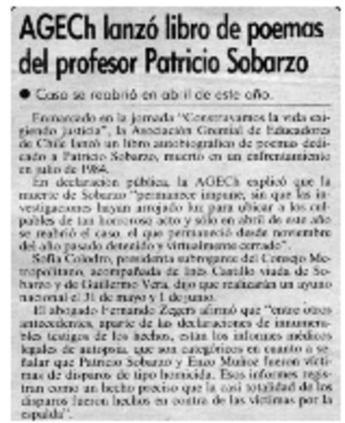Autores chilenos - Sobarzo, Patricio - Asociación Gremial de Educadores de Chile - Poemas dedicados a Patricio Sobarzo