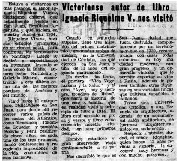 Victoriense autor de libro Ignacio Riquelme V. nos visitó. [artículo]