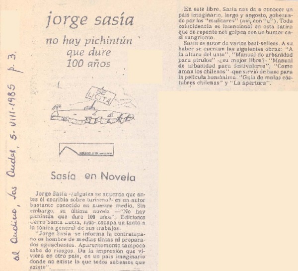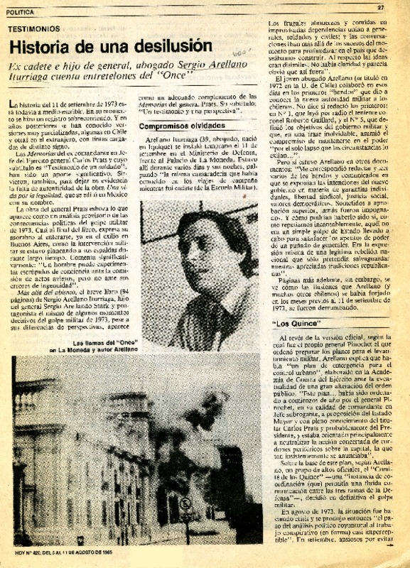 Yo admiro un regimen fuerte porque va a desembocar en una democracia" : [entrevista] [artículo] Manuel Santelices.