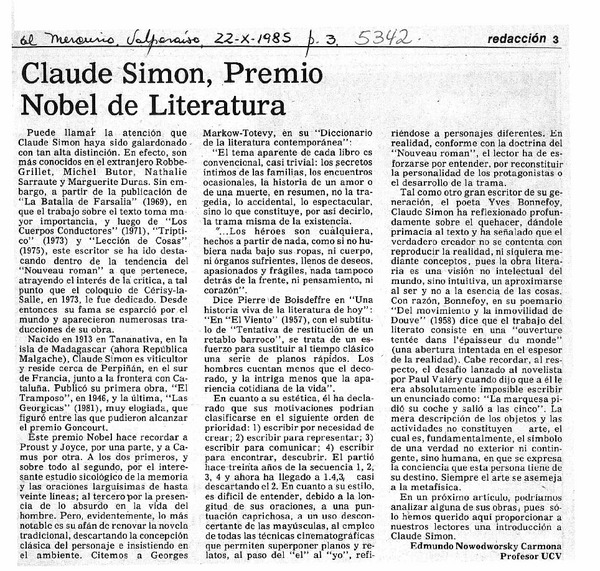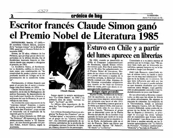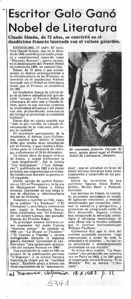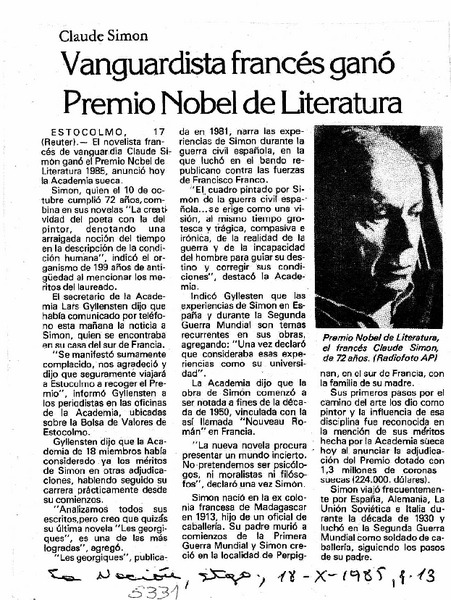 Vanguardista francés ganó Premio Nobel de Literatura. [artículo]