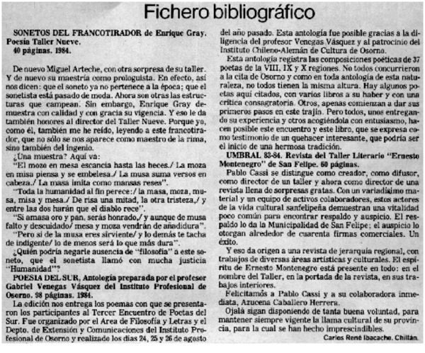 Autores chilenos - Puentes Gil, Enrique - Entrevista