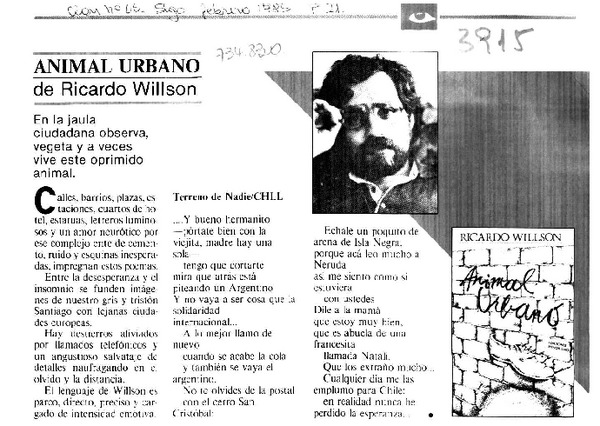 Willson: Animal Urbano. [artículo]