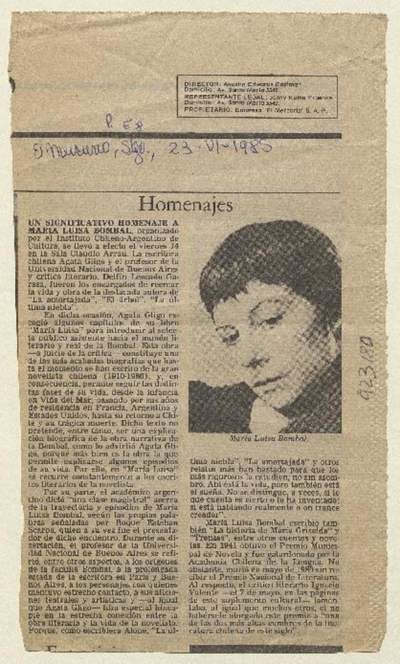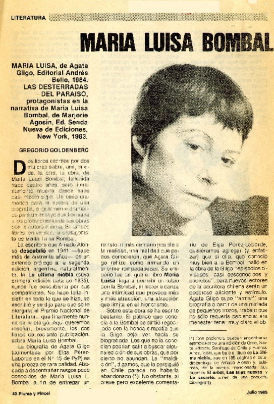 Autoras chilenas - María Luisa - Gligo, Agata - Bombal, María Luisa