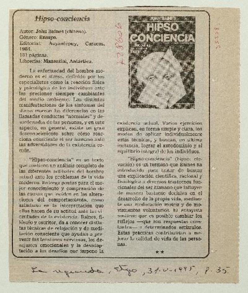 Autores chilenos - Irarrázabal, Leonidas - Entrevista