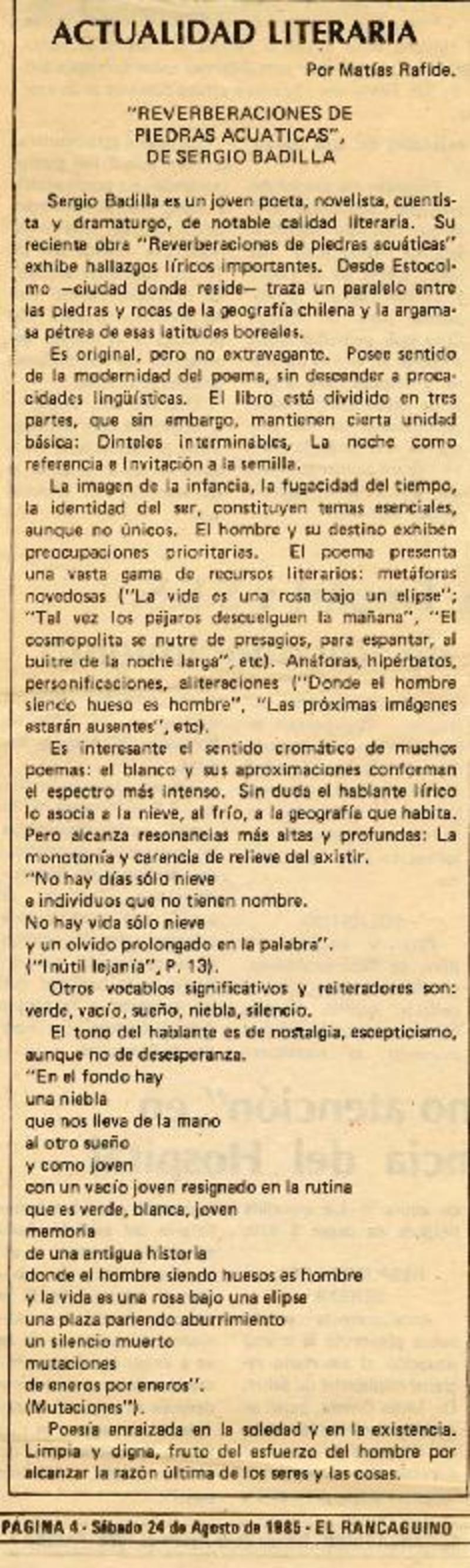 Actualidad literaria [artículo] Matías Rafide.