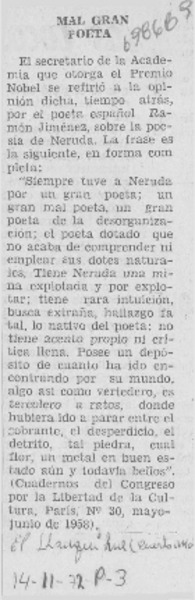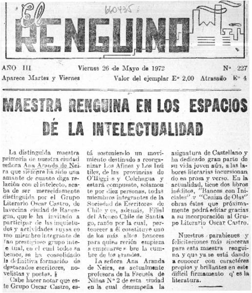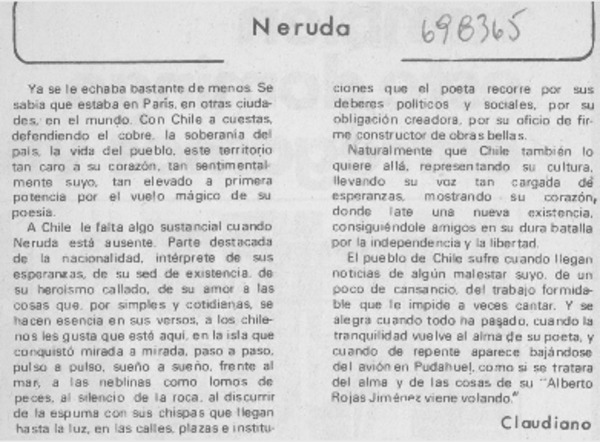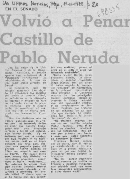 Volvió a penar Castillo de Pablo Neruda. [artículo]