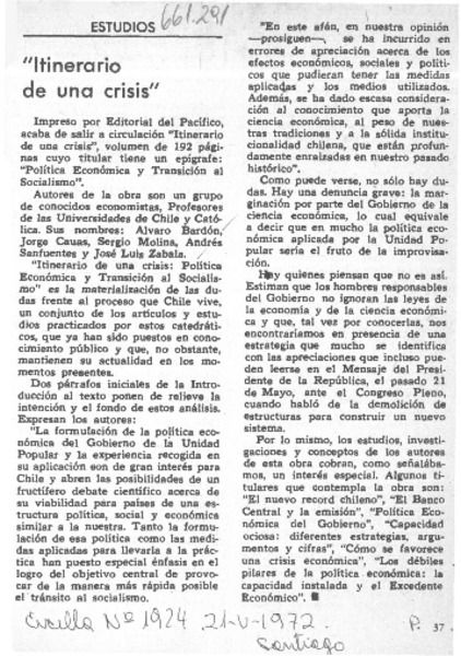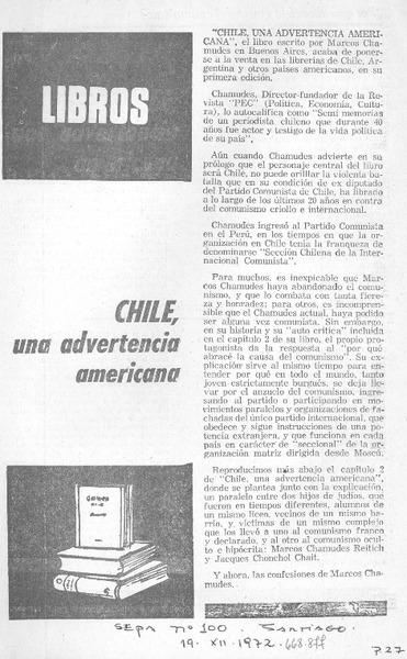 Un panorama objetivo "Visión crítica de Chile" [artículo] : Alexis.