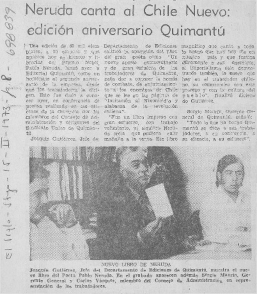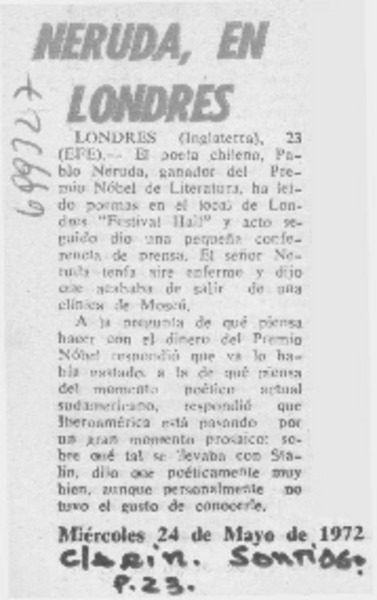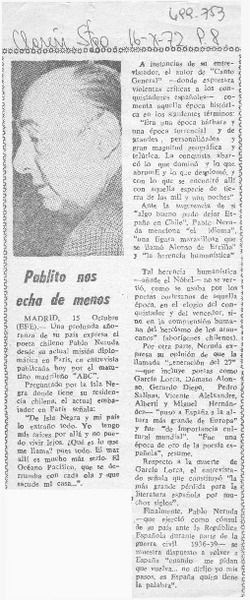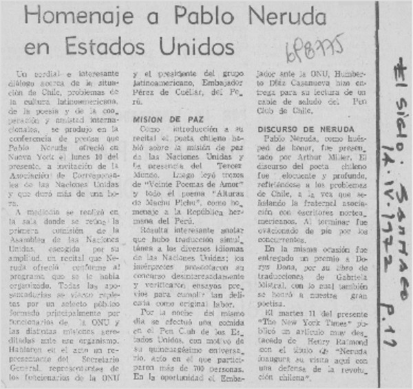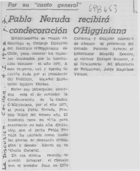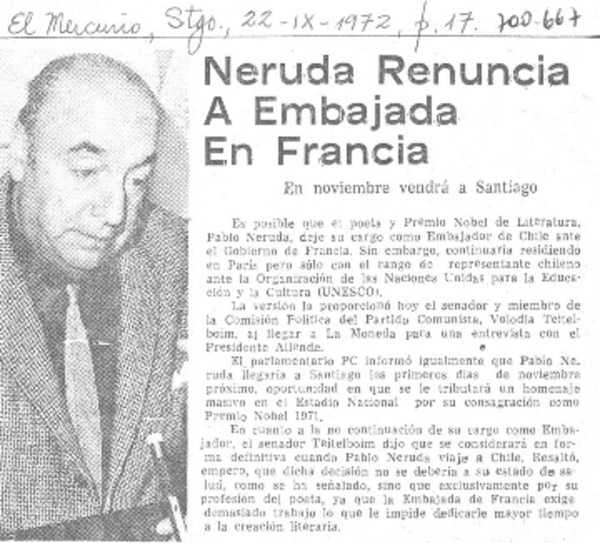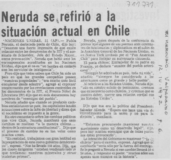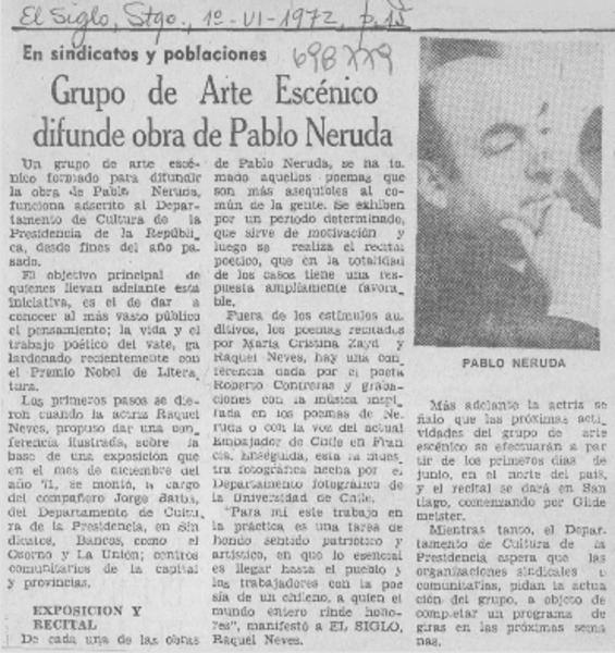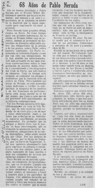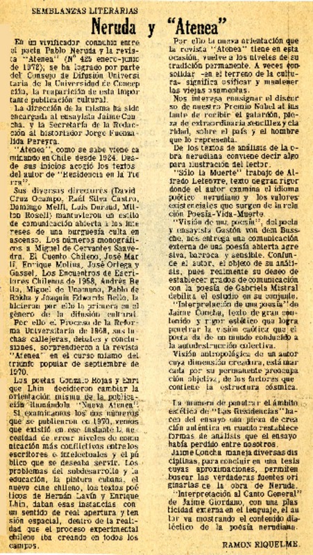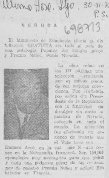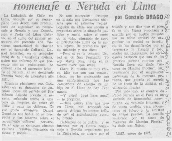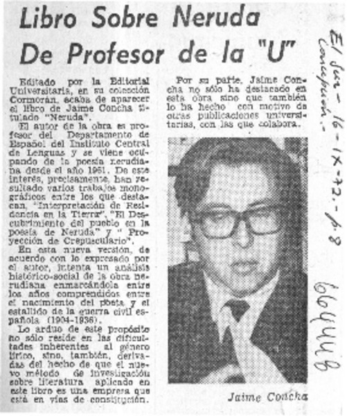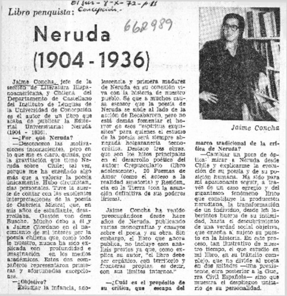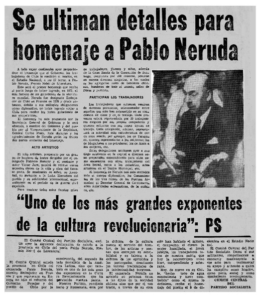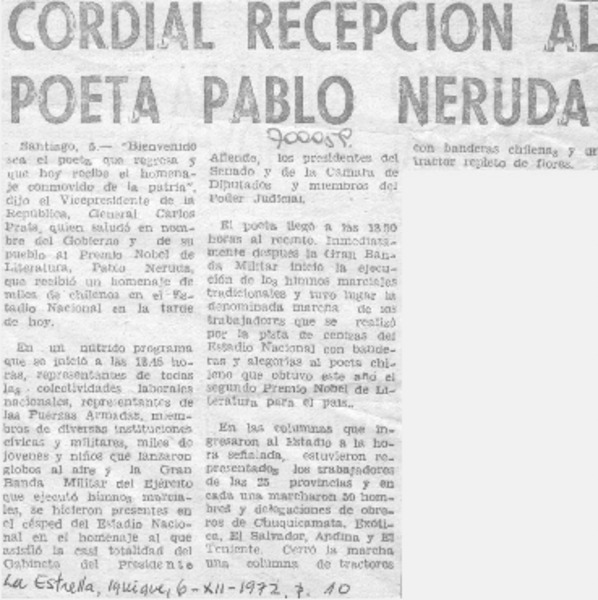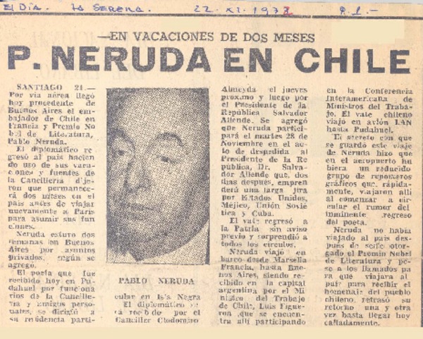 Visita de Pablo Neruda [artículo] Edmundo Concha.