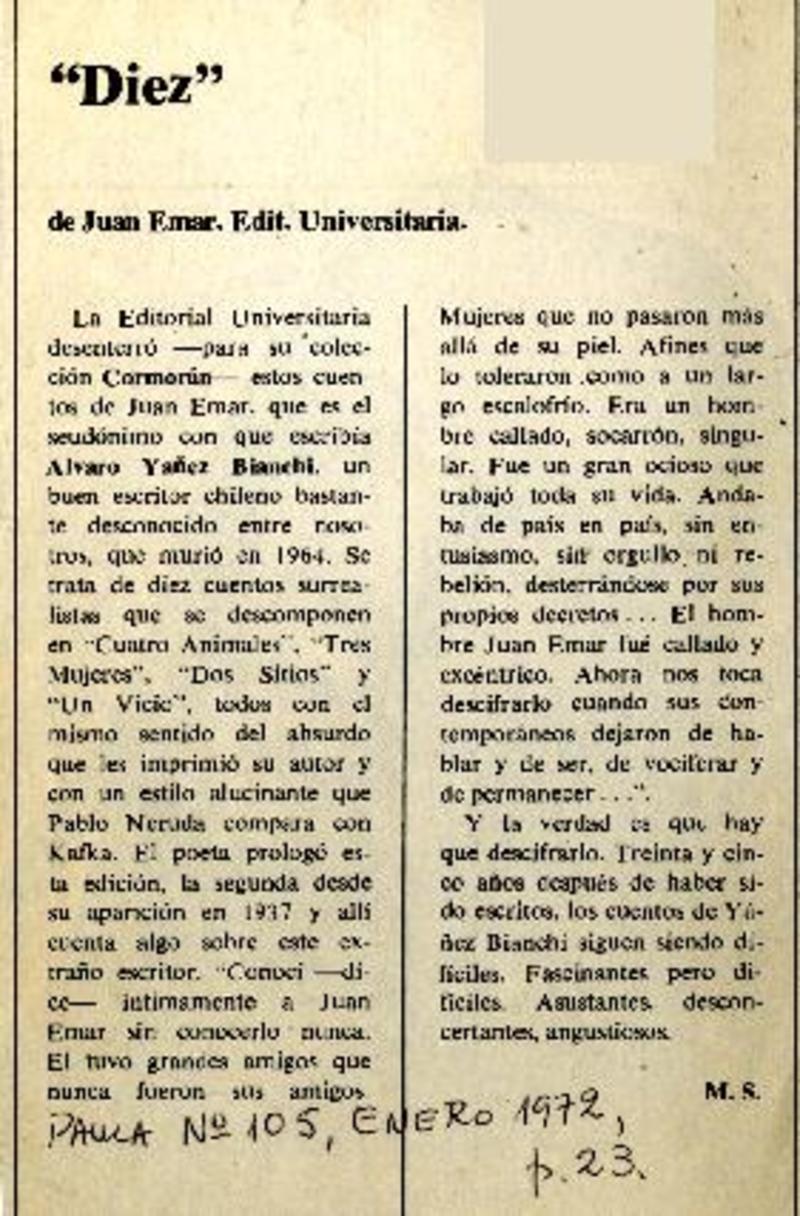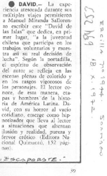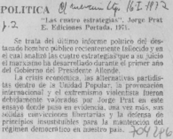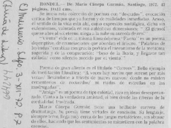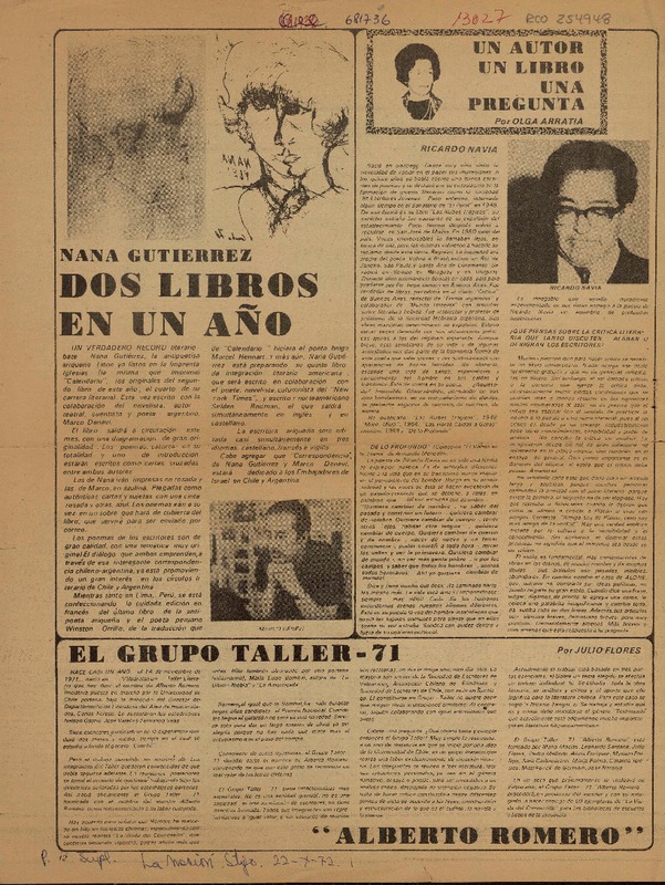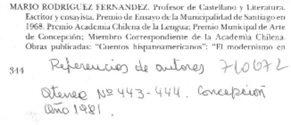 Autores chilenos - Marín, Germán - Alcalde, Alfonso - Arenas, Braulio - Atías, Guillermo - Cassigoli, Armando - Miranda Sallorenzo, Manuel