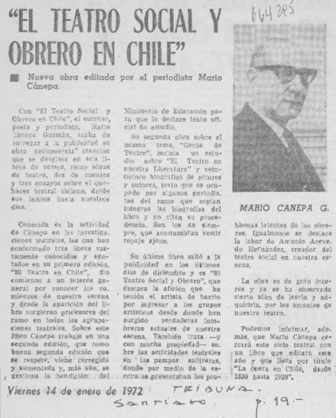 Un teatro social y obrero [artículo] Marino Muñoz Lagos.