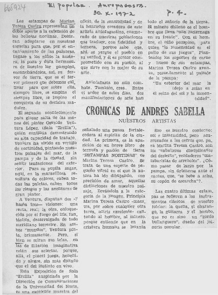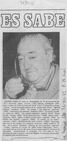 Andrés Sabella: un niño más el mar [artículo] Hernán del Solar.