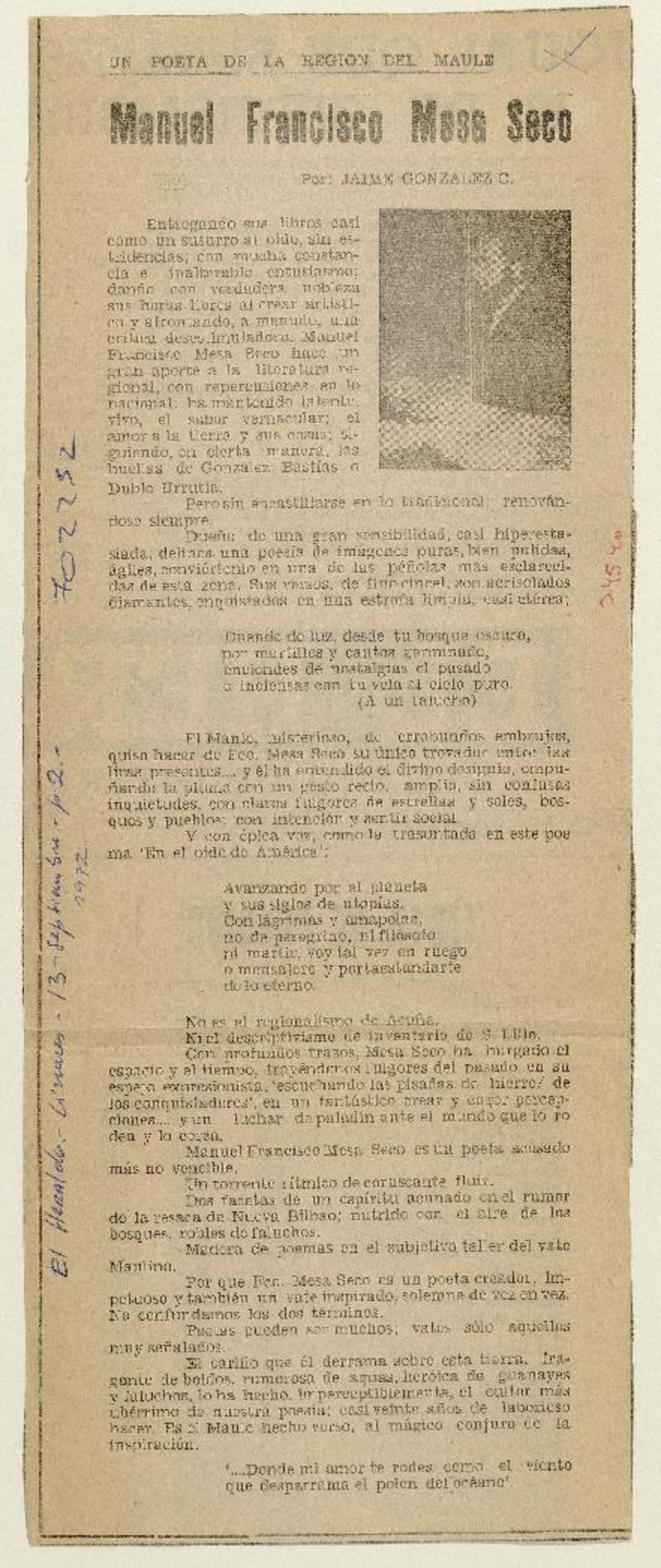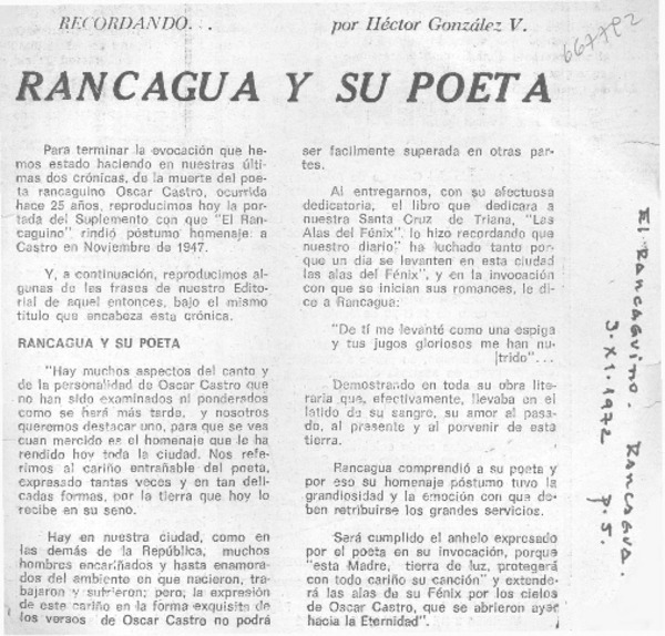 Alejandro Flores: el poeta que Rancagua no debe olvidar [artículo] Hernán González V.