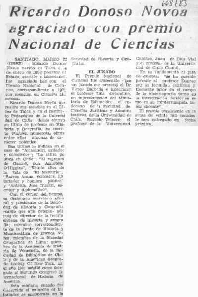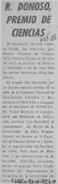 Academia chilena concede su Premio anual a Carlos Ruiz-Tagle. [artículo]