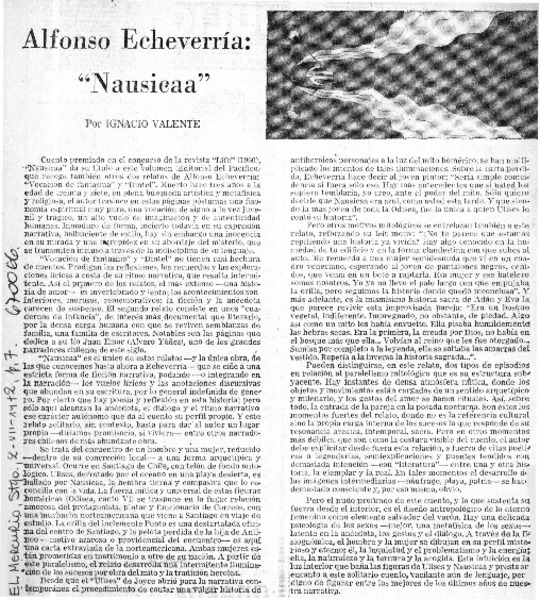 Alonso Echeverría: "Nausicaa" [artículo] Ignacio Valente.