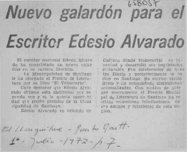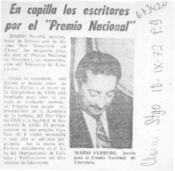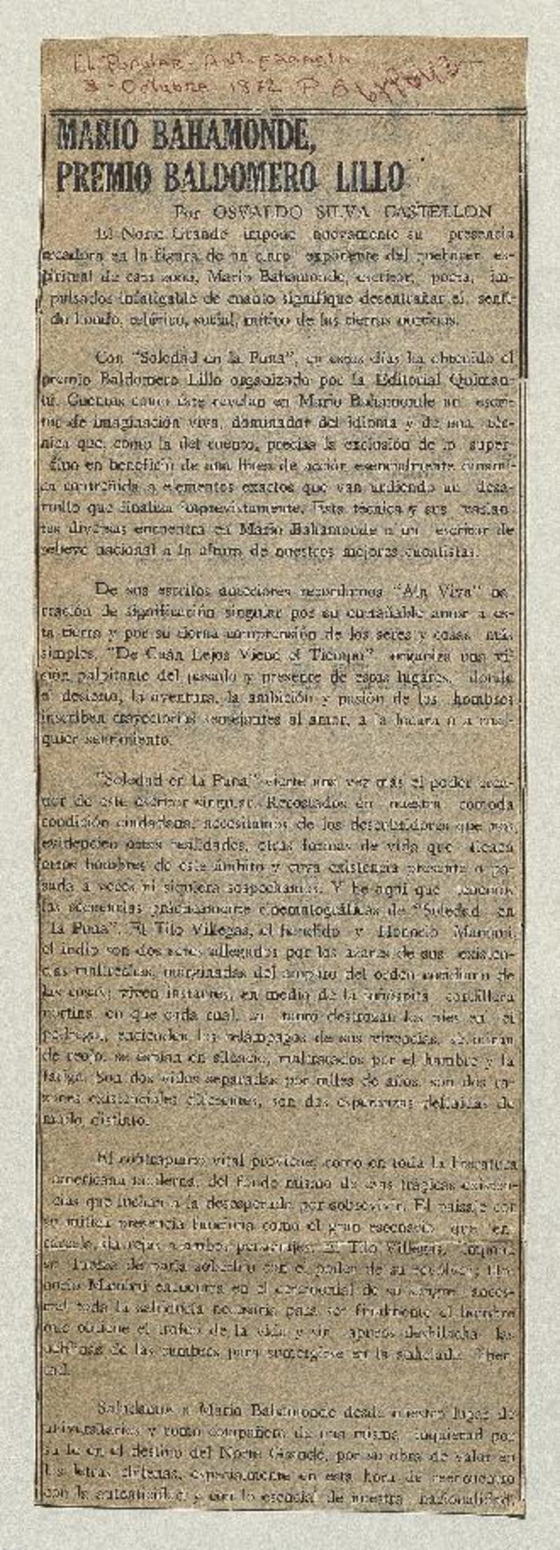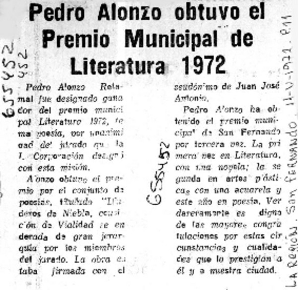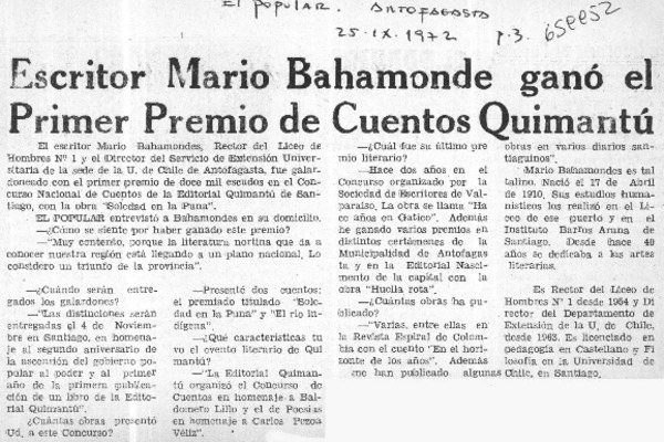 Albero Carrizo primer premio en importante concurso literario. [artículo]