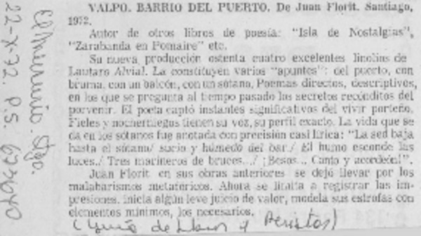 Autores chilenos - Florit, Juan - Valpo. Barrio del puerto