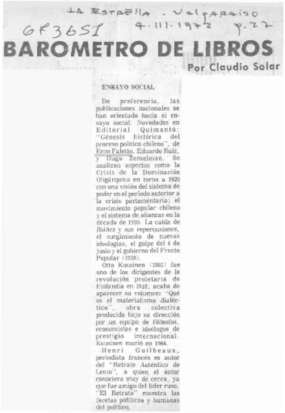 Autores chilenos - Visión crítica de Chile - Baraona Urzúa, Pablo
