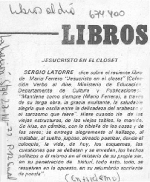 Un renovador de la fábula (entrevista) [artículo] Luis E. Sendoya.