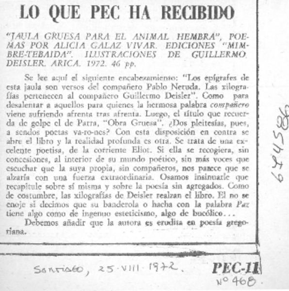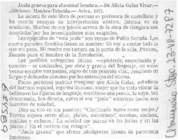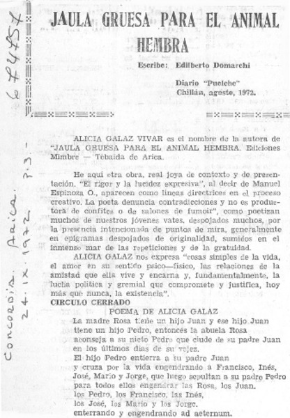 Jaula gruesa para el animal hembra - Galaz Vivar, Alicia - Autoras chilenas