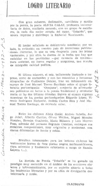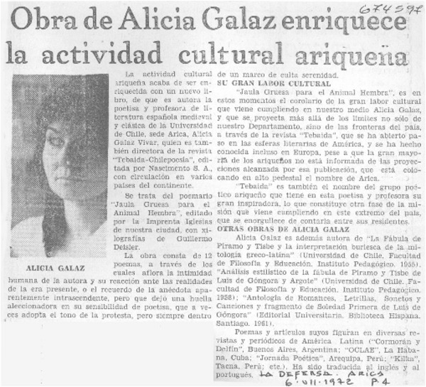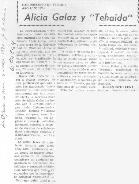 Alicia Galaz y "Tebaida" [artículo] Julián Soto Luna.