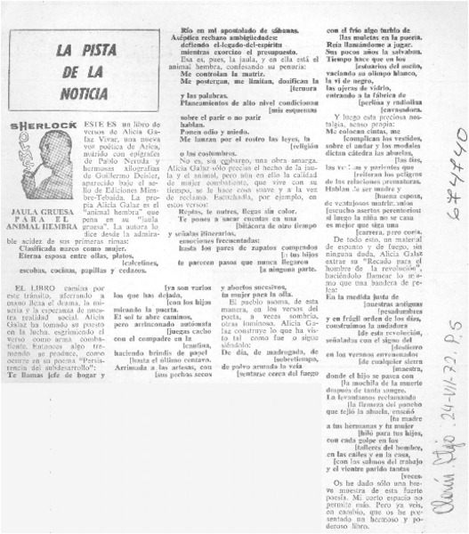 Alicia y su "jaula" [artículo] Alicia Enríquez.