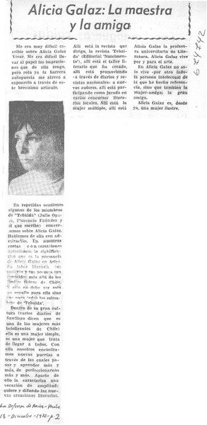 Alicia Galaz, la maestra y la amiga. [artículo]