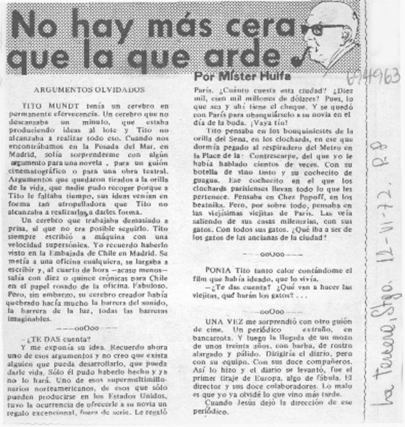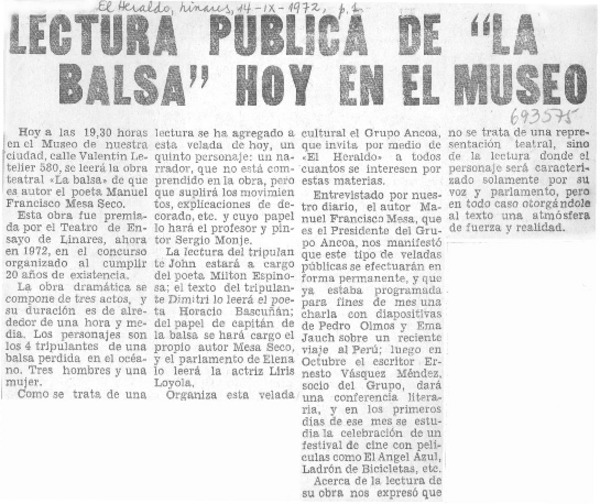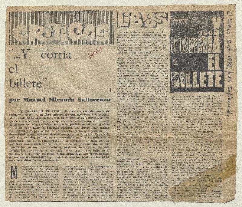 Y corría el billete [artículo] Manuel Miranda Sallorenzo.