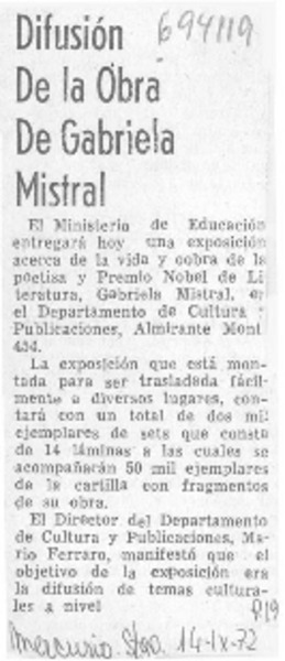 Vida y obra de Gabriela Mistral [artículo] M. A. D.