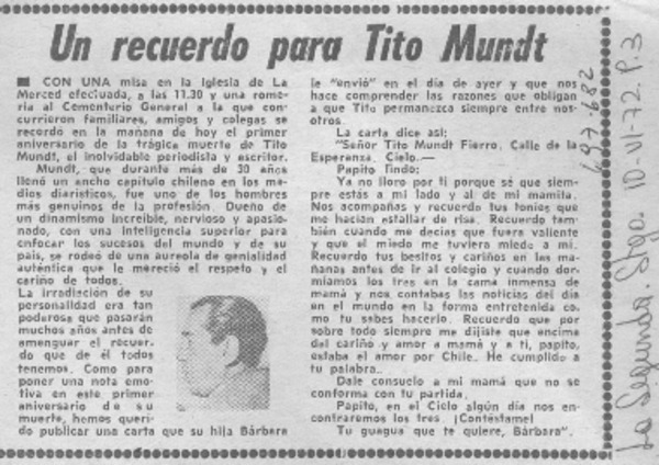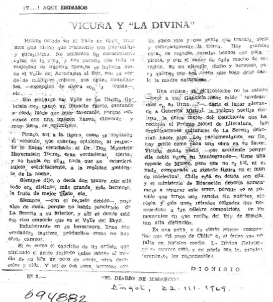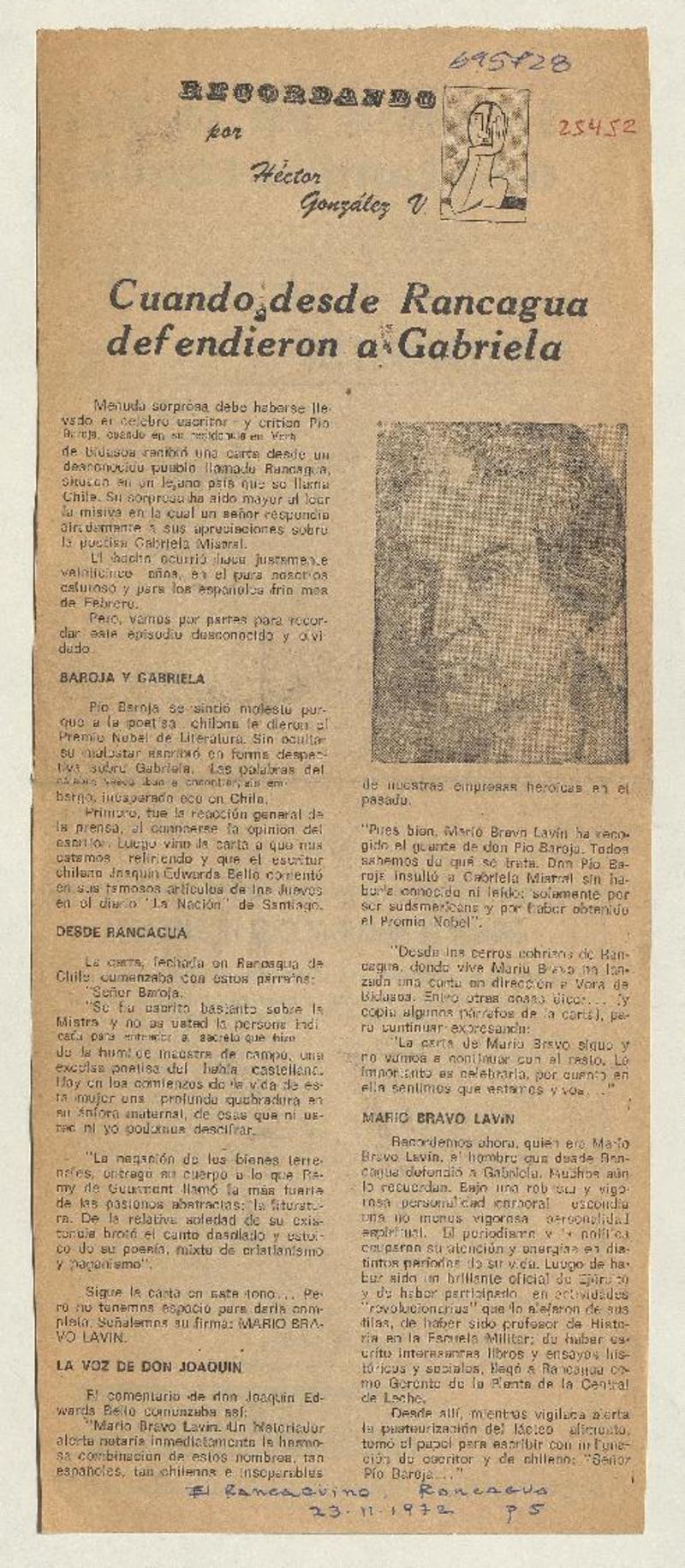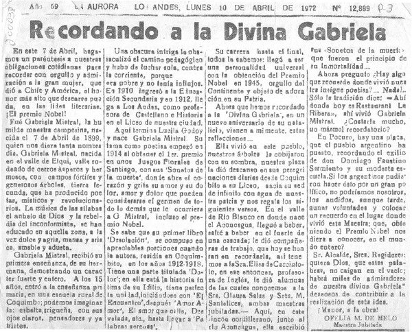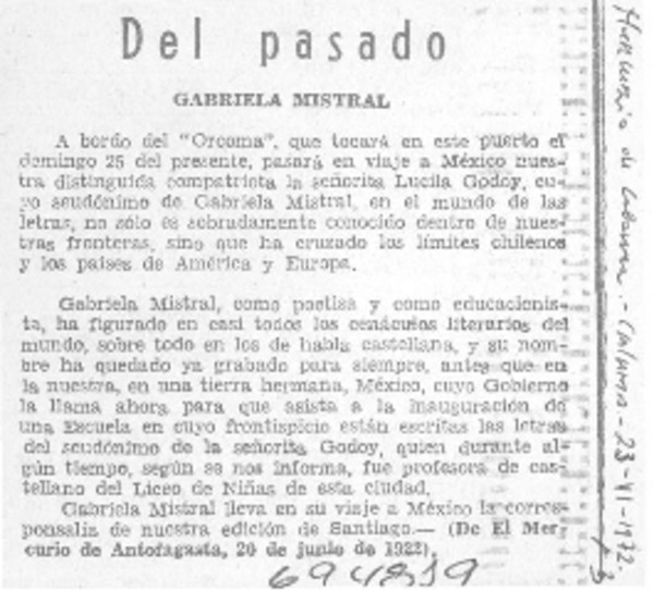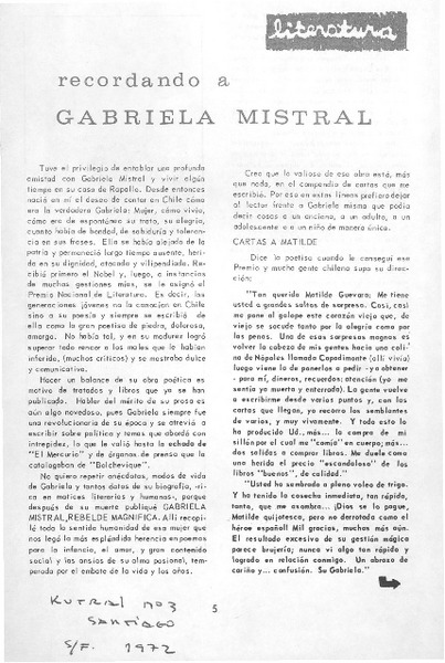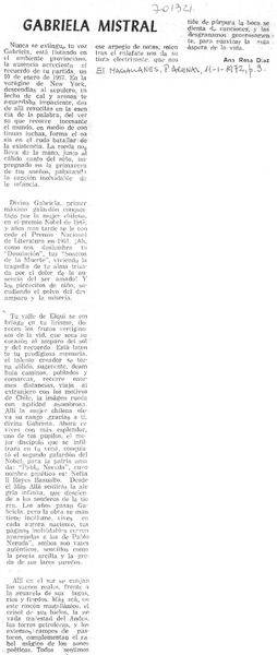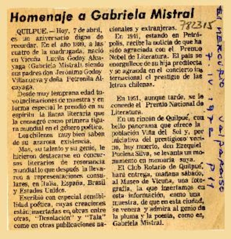 Un recuerdo para Gabriela Mistral [artículo] Santiago Polanco Nuño.