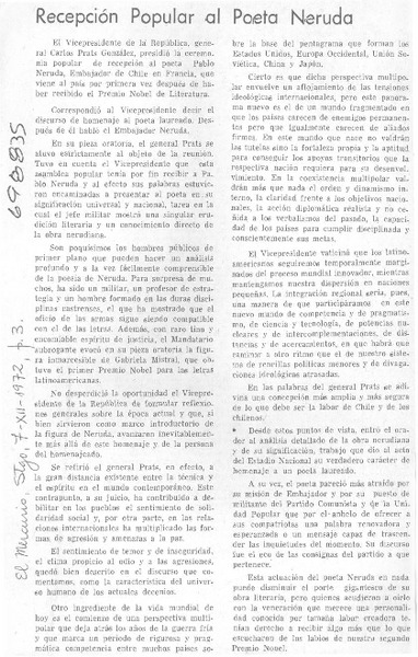 Vicepresidente dará la bienvenida a Pablo Neruda. [artículo]